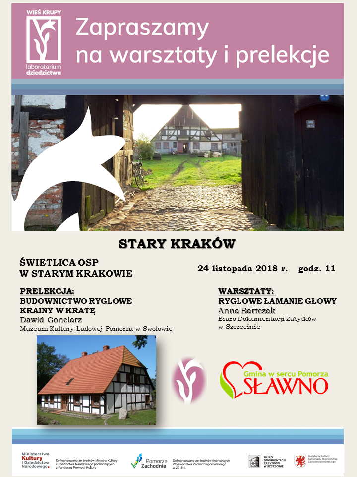 W ramach projektu "Wieś Krupy - laboratorium dziedzictwa" zostały przeprowadzone prelekcje na temat Krainy w Kratę oraz warsztaty ryglowe w:
