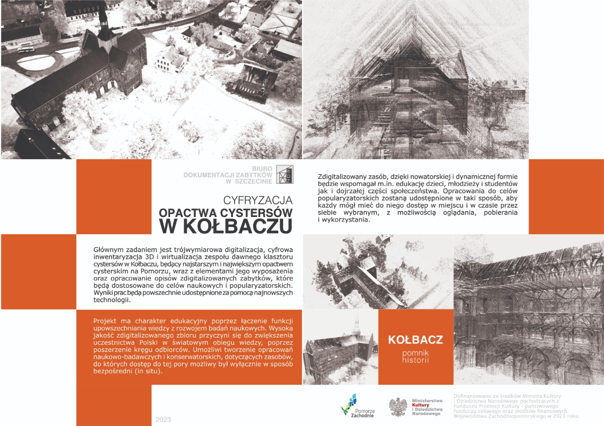 Biuro Dokumentacji Zabytków w Szczecinie, instytucja kultury Samorządu Województwa Zachodniopomorskiego, podjęło się w 2023 roku cyfryzacji zachowanych elementów zespołu klasztornego w Kołbaczu wpisanego w 13.07.2014 roku na listę Pomników Historii ze względu na wartości historyczne, artystyczne i naukowe, materialne i niematerialne, założenia pocysterskiego będącego wybitną realizacją z przełomu romanizmu i gotyku, wyróżniającą się nowatorstwem rozwiązań architektonicznych oraz wysokiej klasy detalem.