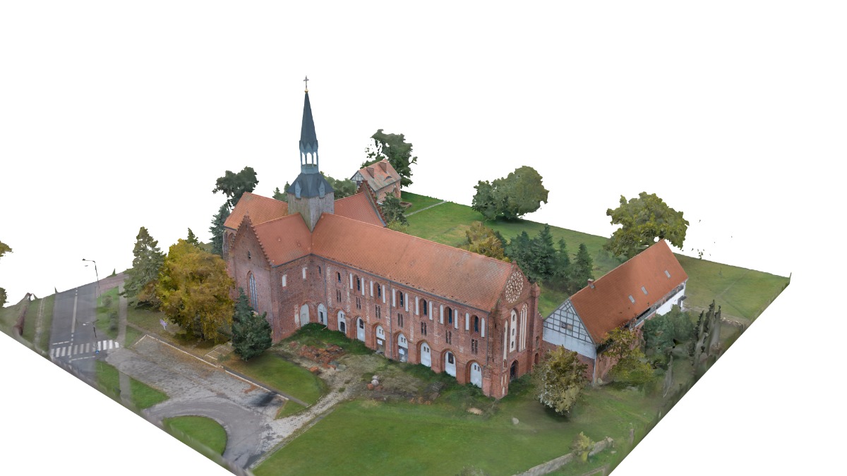 - wykonanie cyfrowej dokumentacji inwentaryzacyjnej kościoła, domu opata i stodoły w chmurze punktów oraz wygenerowanie dedykowanej aplikacji do zarządzania tymi zbiorami.