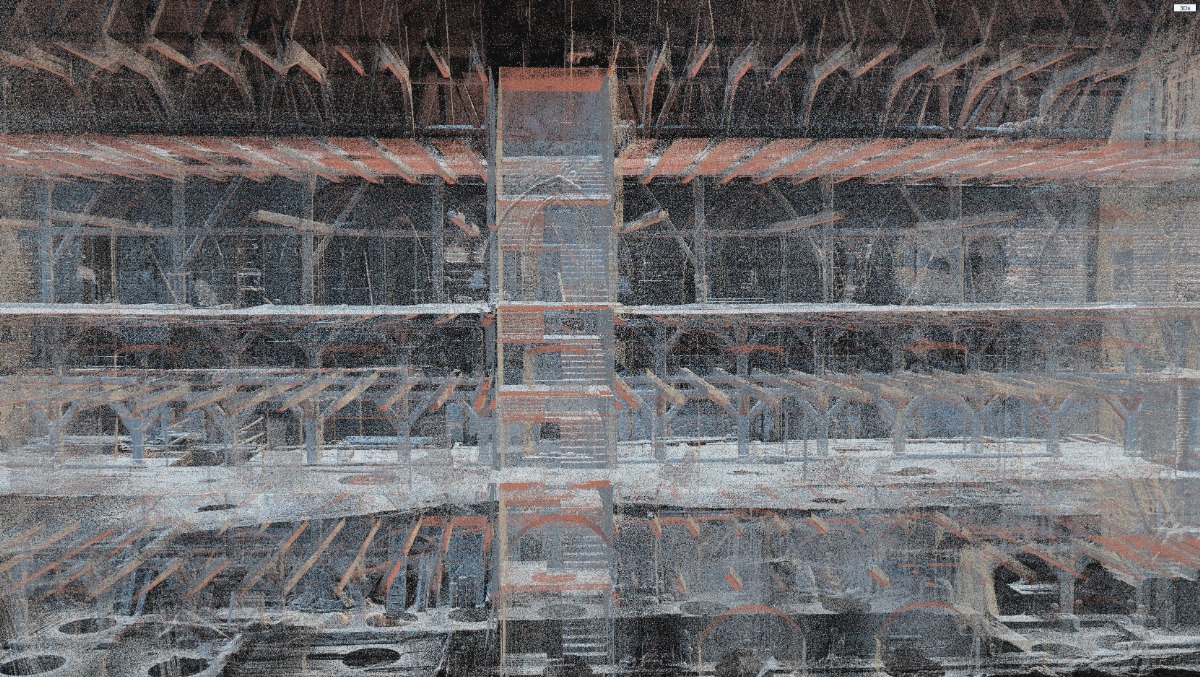 - skaning 3D architektury wnętrza oraz zewnętrznych murów kościoła, stodoły i domu opata oraz wygenerowanie chmur punktów.