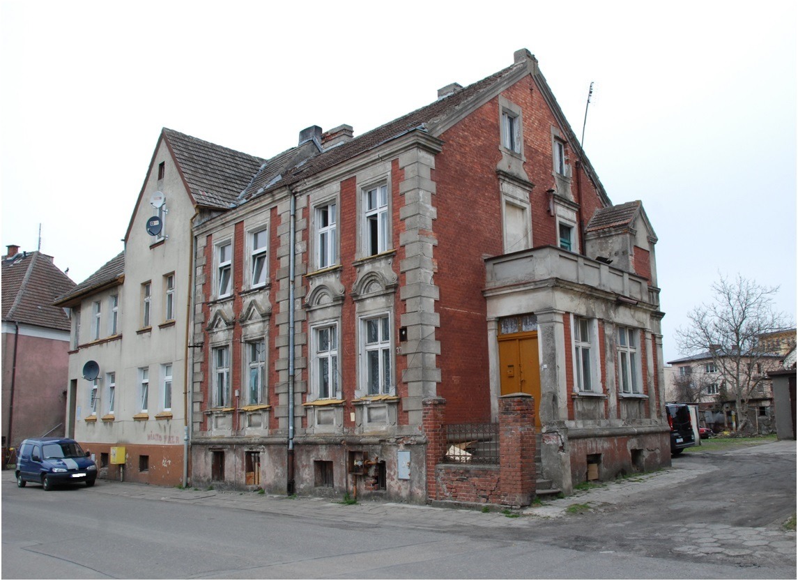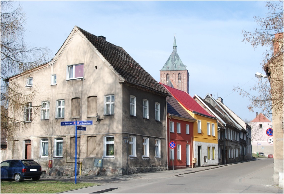 W obrębie zabudowy uliczek staromiejskiego centrum można spotkać starsze domy, z 1 poł. XIX w., np. przy ul. Grottgera, murowano-ryglowe, niskie (1-piętrowe), ustawione kalenicami wzdłuż ulicy. Ich otynkowane grubymi tynkami fronty, z przemurowanymi oknami, dewaloryzują historyczne bryły. Szczęśliwie zachowały się drzwi frontowe, prowadzące do sieni. Mimo niekompletnej oryginalnej formy są unikatowymi przykładami jednych z najstarszych zachowanych w naszym regionie drzwi konstrukcji deskowo – szpungowej, o klasycystycznej formie stylowej awersów.